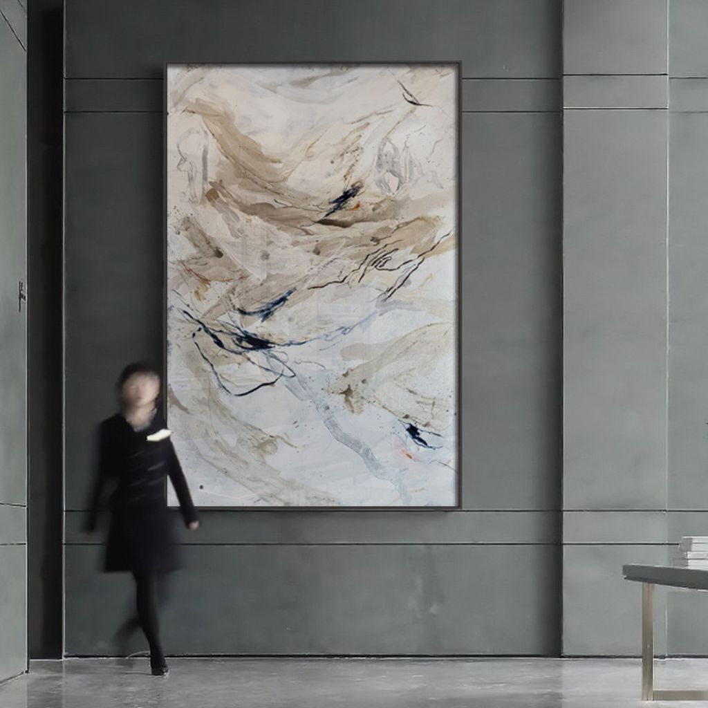 Let your space breathe with the calm yet dynamic energy of Drifting Ink Abstract Wall Art, which captures the beauty of fluid movement and organic textures. This abstract piece features a harmonious blend of earthy beige and dark ink strokes, reminiscent of ink dispersing through water or the graceful dance of wind across a vast landscape. The soothing color palette of warm sands and cool undertones makes this piece a perfect complement to modern, minimalist, or wabi-sabi-inspired interiors.