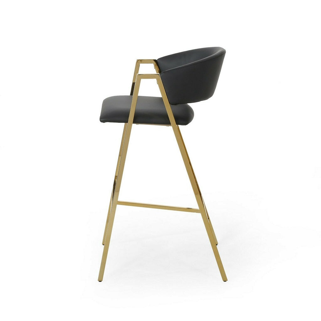 Let the morning sunshine filter in through your kitchen windows, casting a soothing glow across your breakfast nook. You can easily enjoy this picturesque scene in our set of chic bar stools with a refreshing cup of hot coffee. Featuring a refined iron leg frame with a luxurious finish, our bar stool not only brings your kitchen or bar space a gorgeous new look but also offers incredible stability. The seating features a chic black faux leather material, giving any space a sophisticated atmosphere.